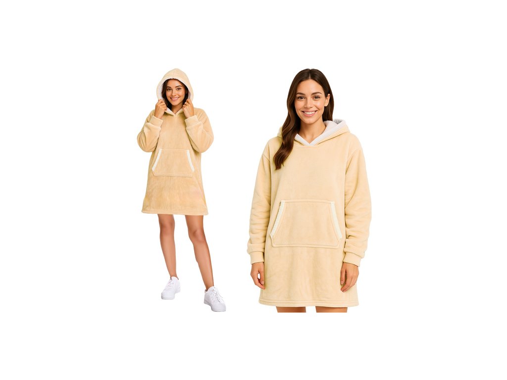 Měkká a teplá mikina s přikrývkou RUHHY v sobě spojuje funkčnost mikiny s pohodlím deky. Díky všestrannému střihu oversize, kapuci a klokaní kapse je ideální pro relaxaci doma, na terase nebo na cestách . Je snadno udržovatelná a stylová, takže se v chladných dnech budete cítit pohodlně.