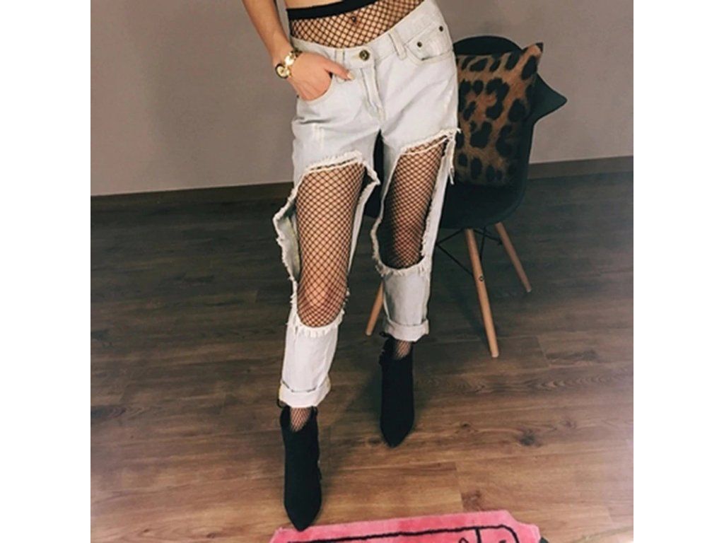 Dámské černé silonky s dírami. Silonky lze vzít pod děravé džíny, pod kterými krásně vyniknou.