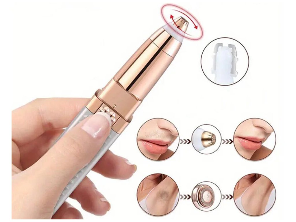Zastřihovač je decentní a vypadá jako řasenka. Malé rozměry umožňují nošení v kabelce nebo kapse. Epilátor má zabudované světlo , díky kterému můžete důkladně epilovat pokožku i při slabém osvětlení. Sada obsahuje dva vyměnitelné hroty.