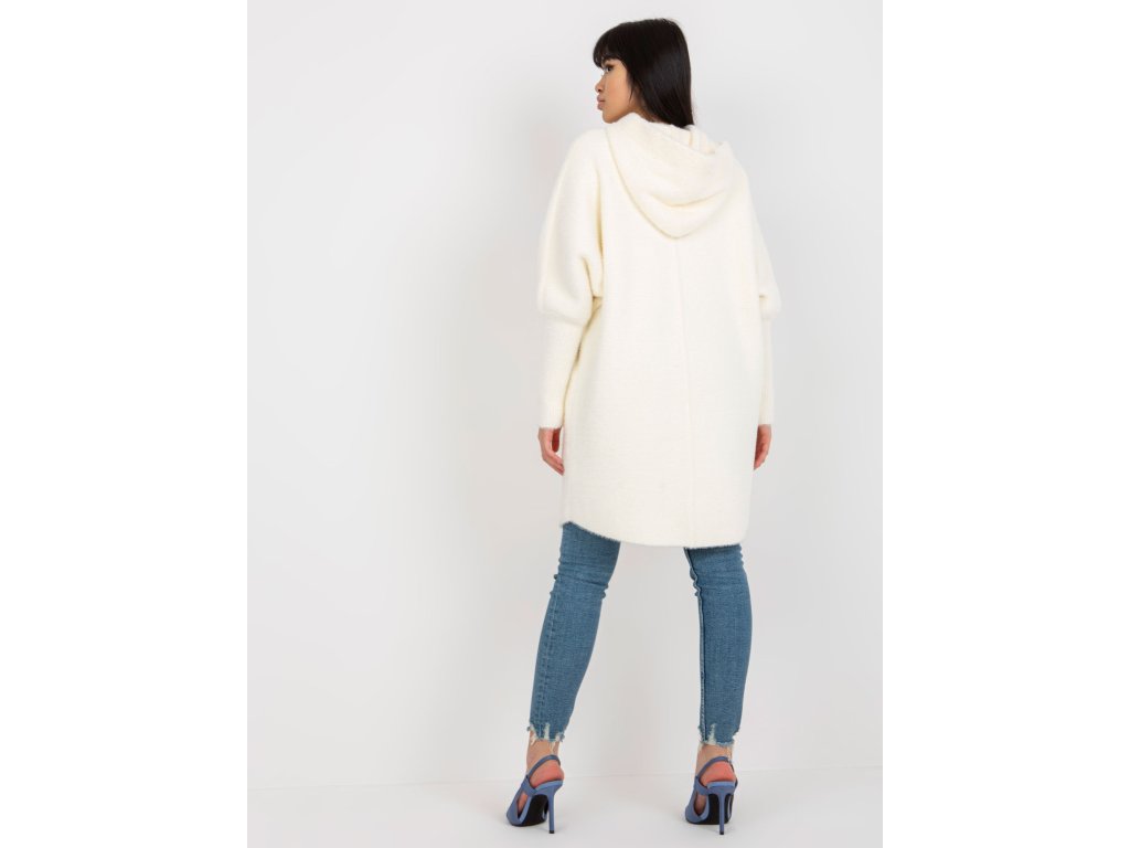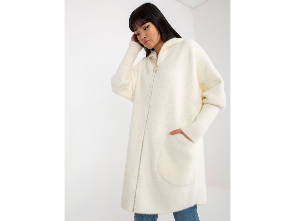 Dámský kabát z alpaka v barvě ecru s kapsami a kapucí