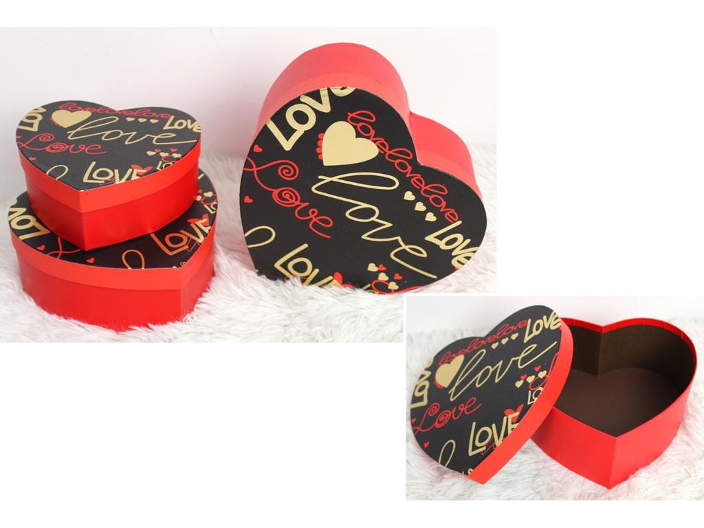Dárkové krabičky SRDCE ČERVENO-ČERNÉ LOVE, sada 3 ksDoplňkové parametry
