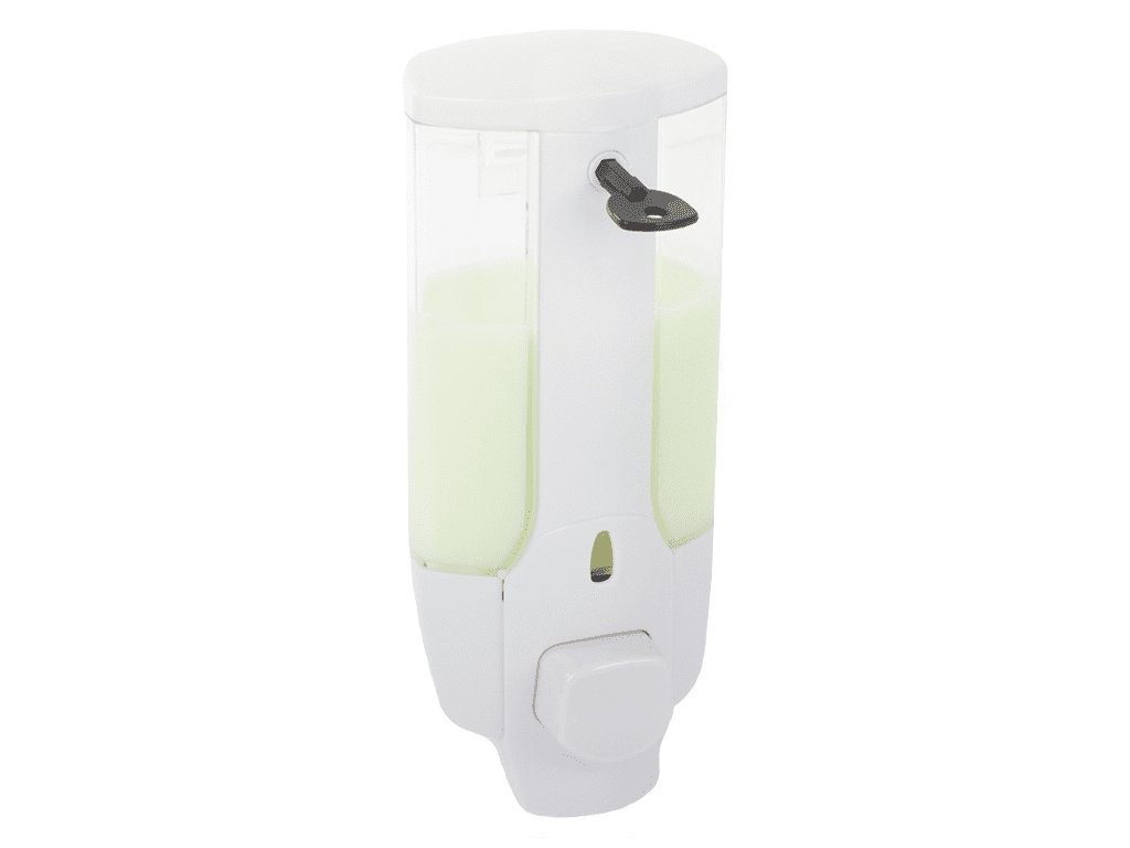 Dávkovač je dodáván s klíčem, který umožňuje snadné doplňování kapaliny v nádrži. Kapacita 350 ml nám umožní používat jej po dlouhou dobu. Dávkovač se montuje na stěnu pomocí prvků obsažených v sadě.