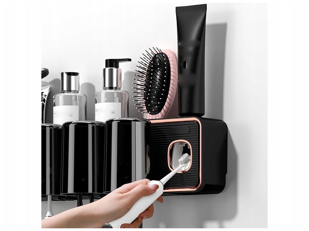 Dávkovač zubní pasty, držák kartáčků, závěsný organizér + kelímky