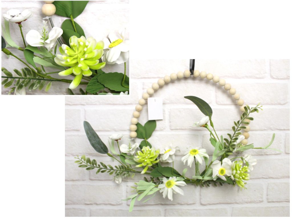 Dekorace, věnec na obruči s dřevěnými korálky PIANKOWY ZAWILEC s doplňky 33 cm