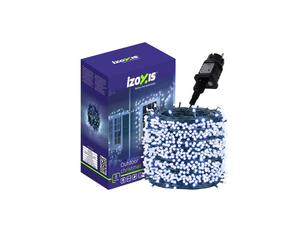 Dekorační LED řetěz s 500 LED diodami a délkou 35 metrů, ideální pro venkovní i vnitřní použití. Vychutnejte si jasné studeně bílé světlo s více světelnými režimy a robustní konstrukcí vhodnou i pro exteriér.