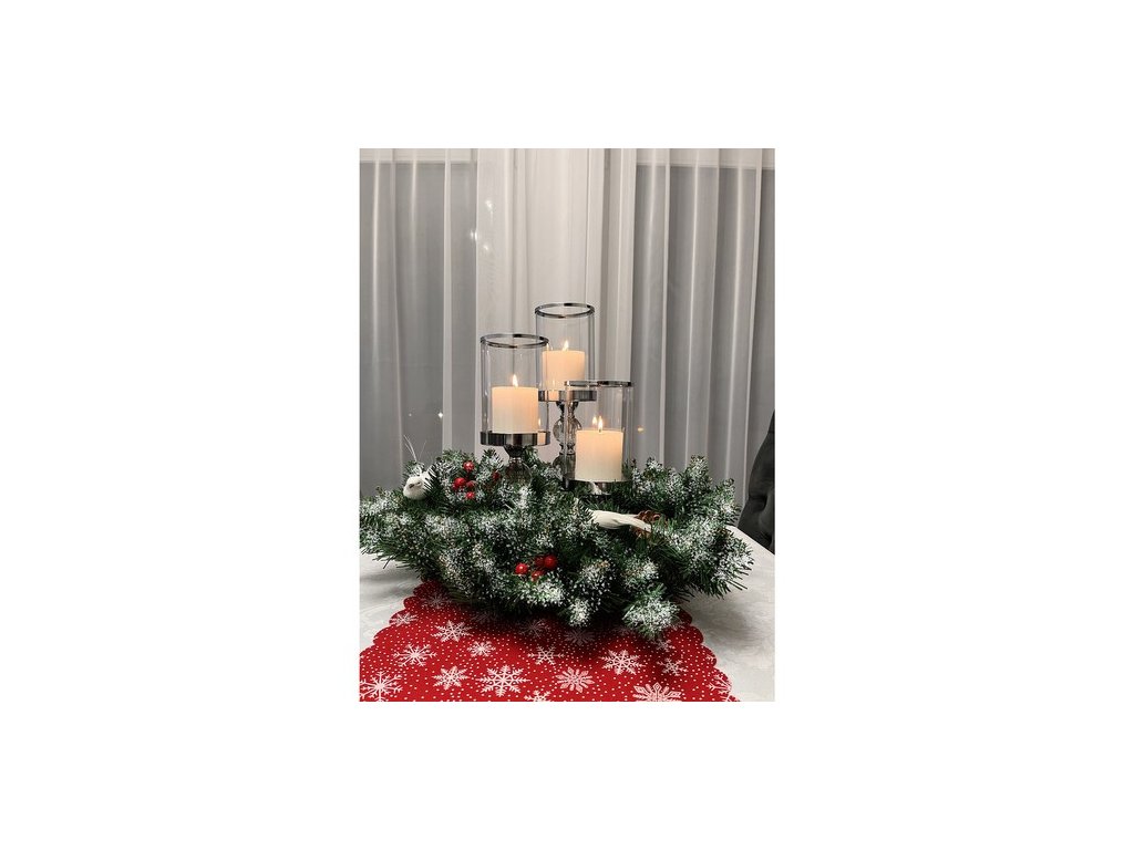 - STYLOVÝ + DEKORACE – umělý věnec na vánoční stromeček bude perfektním doplňkem do každé místnosti. S ním S touto pomocí můžete vytvořit jedinečné kompozice nejen do obývacího pokoje, skvěle poslouží i v... předsíň nebo na vstupní dveře. Navíc je zdobený y umělý sníh, umělé šišky a větvičky s červenými koulemi.