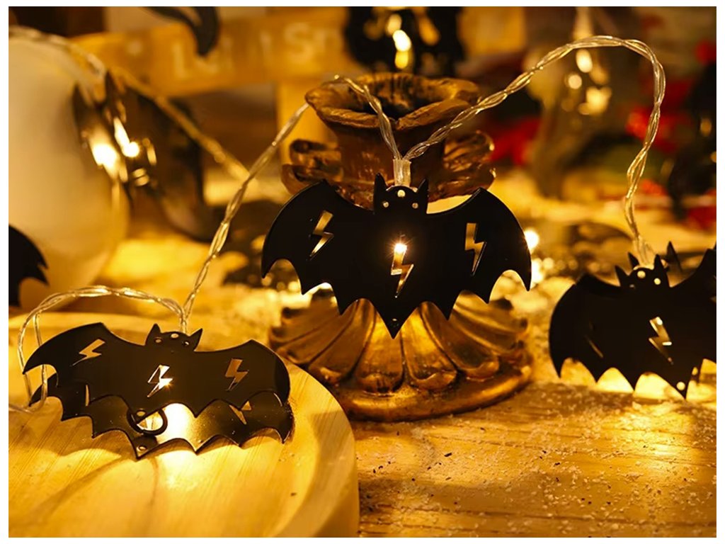Dekorativní LED řetěz s motivem netopýrů – osvětlení 2 m, 10 světel