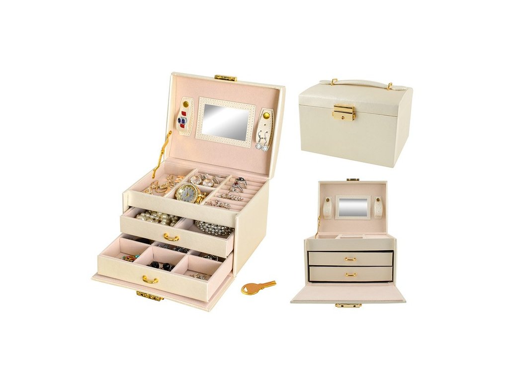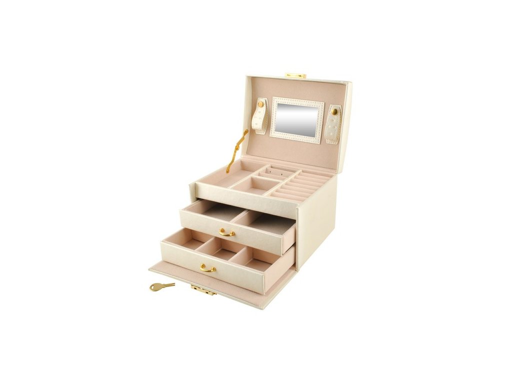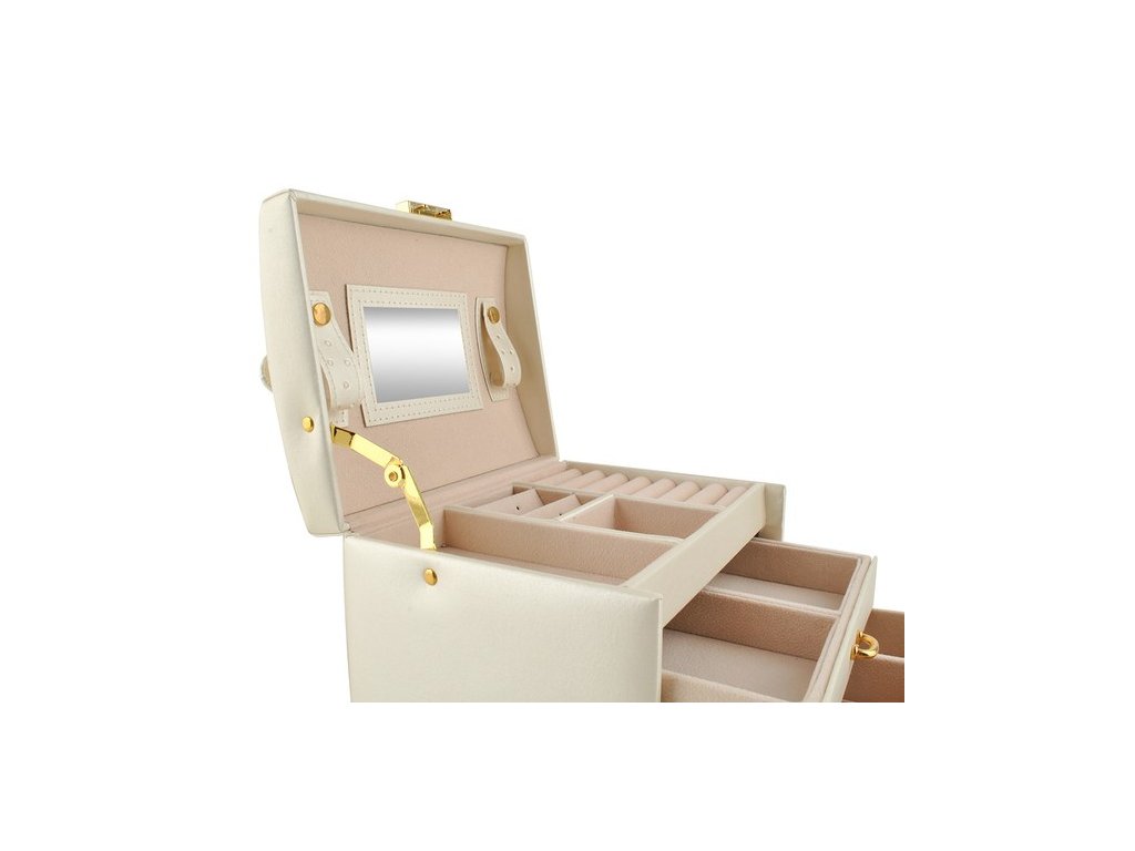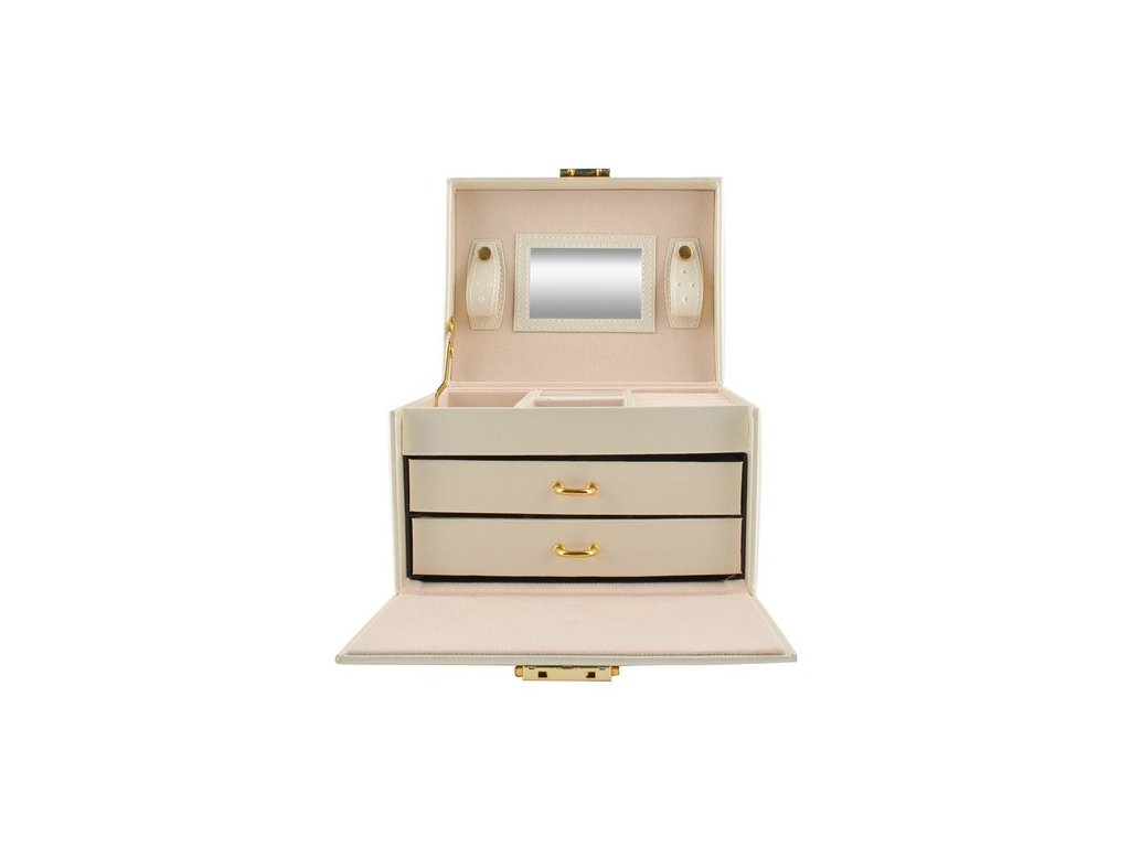 Designová šperkovnice s přihrádkami a zrcátkem - béžová