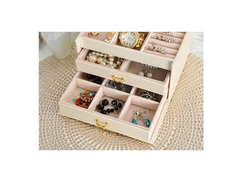 - BEZPEČNÉ PRO ŠPERKY – přihrádky jsou vystlané měkkým materiálem, který chrání jemné a cenné předměty před poškrábáním.