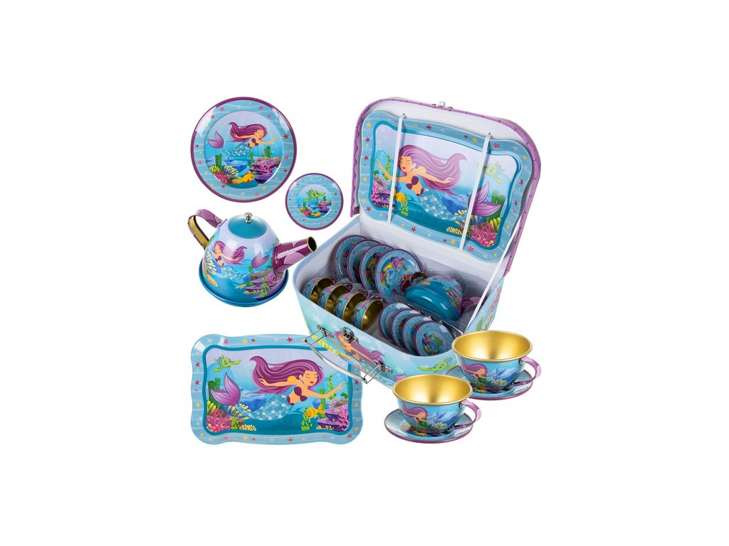 Dětská čajová a kávová sada – kovová čajová sada v přepravním pouzdře s hrnky a příslušenstvím. Bezpečná, lehká a odolná, učí hrou, rozvíjí fantazii a učí etiketě, takže je perfektním dárkem pro mladou hostitelku nebo hostitelku.