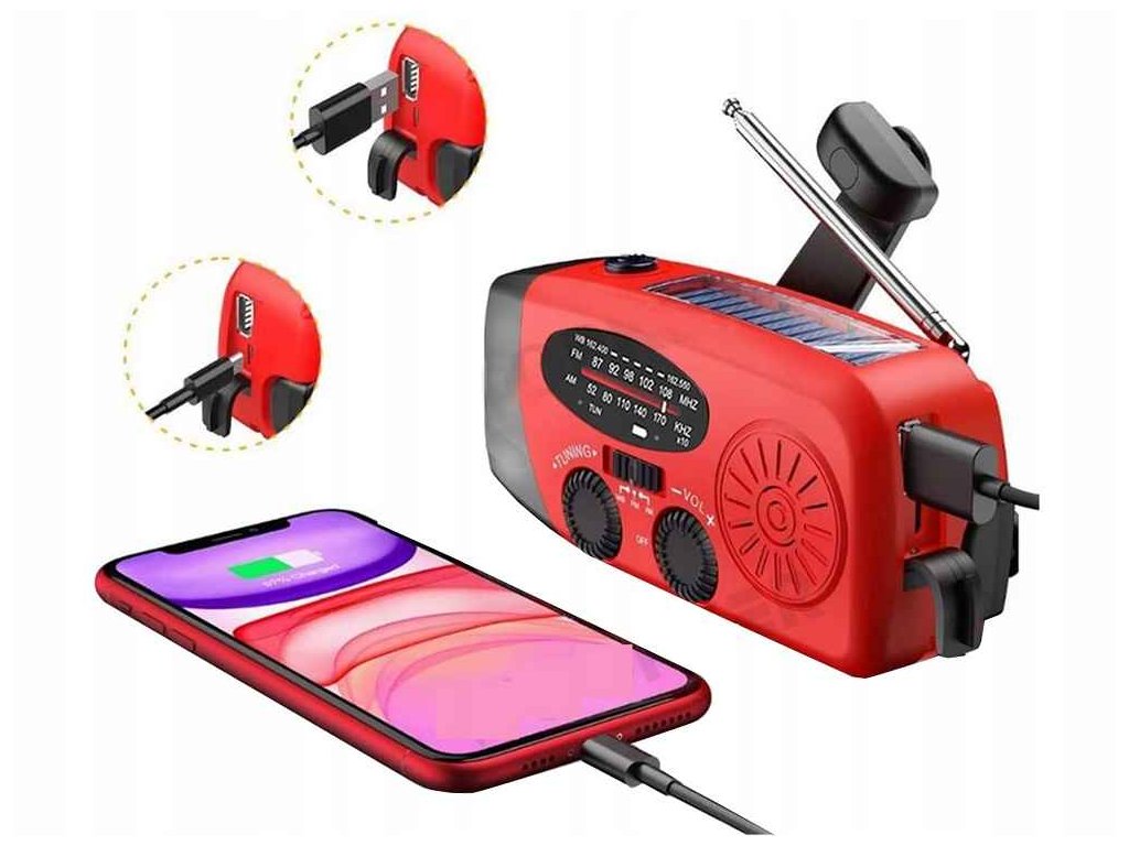 ✅ Ruční napájení (dynamo): Zařízení je vybaveno klikou pro ruční nabíjení, ideální pro případ výpadku proudu.