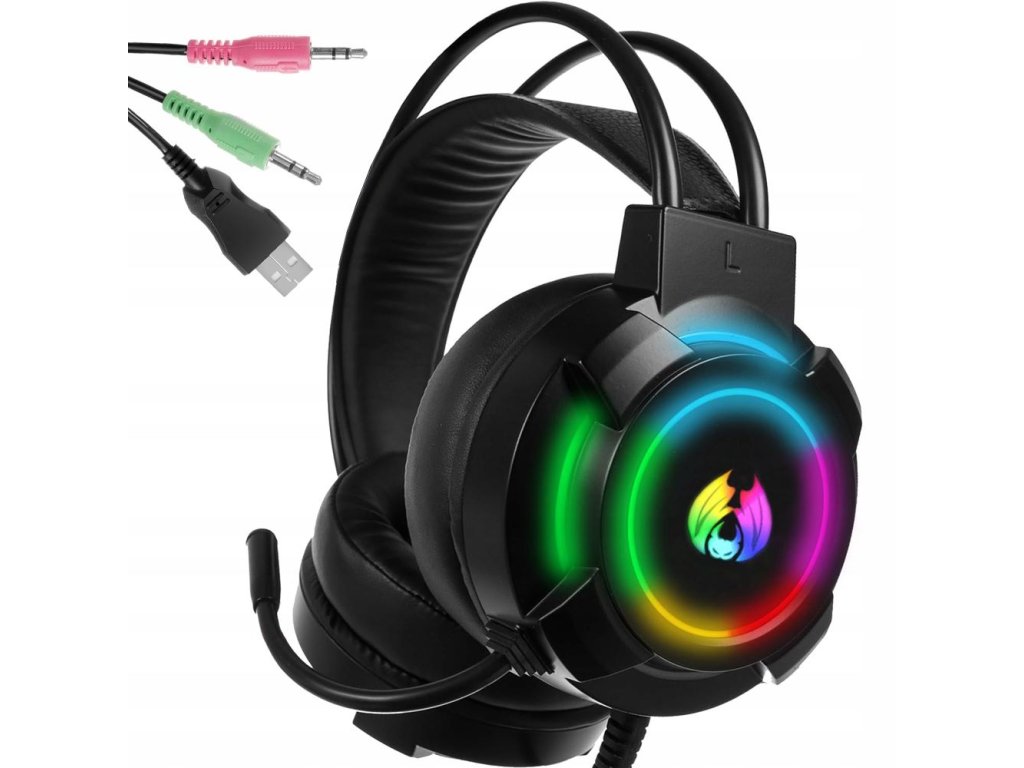 Drátová herní sluchátka, led RGB s mikrofonem 5.1