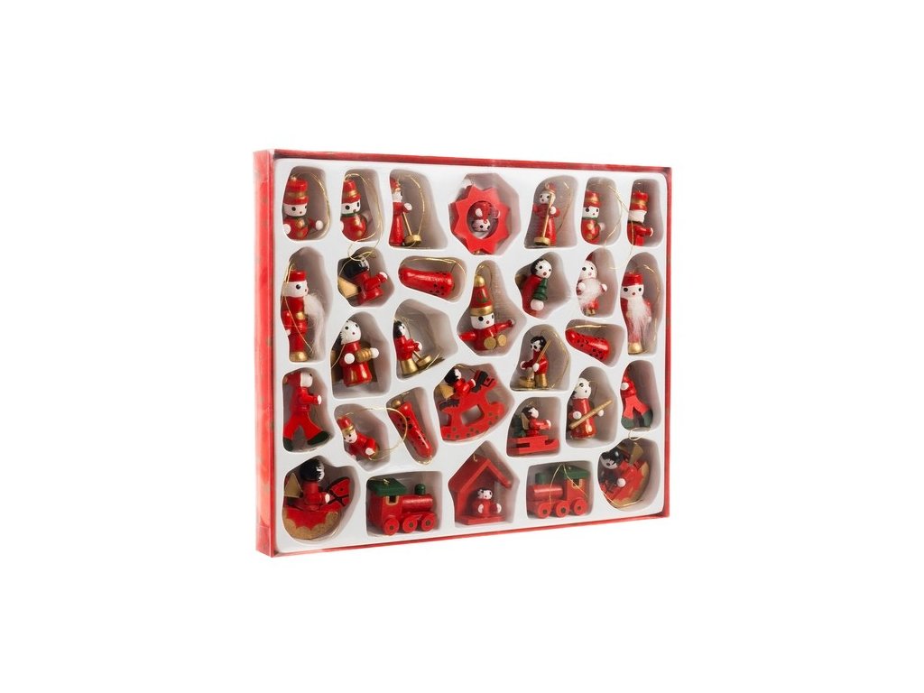- SET 30 PŘÍVĚŠEK - tyto jedinečné dřevěné přívěsky jsou nadčasová nabídka, která osloví fanoušky klasické krásy a jednoduchosti. Sada obsahuje 30 dekorativních vánočních figurek: zvoneček, hvězda, Santa Claus, vagon a další motivy spojené se zimním obdobím. Určitě dodají kouzlo každému vánočnímu aranžmá.