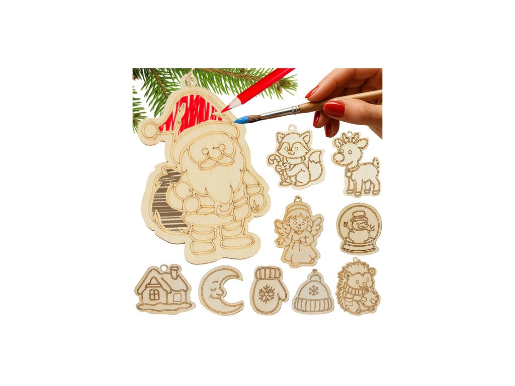 Dřevěné ozdoby na stromeček k vymalování 24 ks