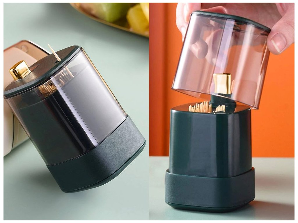 Díky jednoduchému tlačítku v horní části nádoby je vyjímání párátek snadné a intuitivní. Nyní můžete mít svá párátka vždy po ruce, aniž byste je museli hledat v kuchyňských zásuvkách nebo skříňkách.