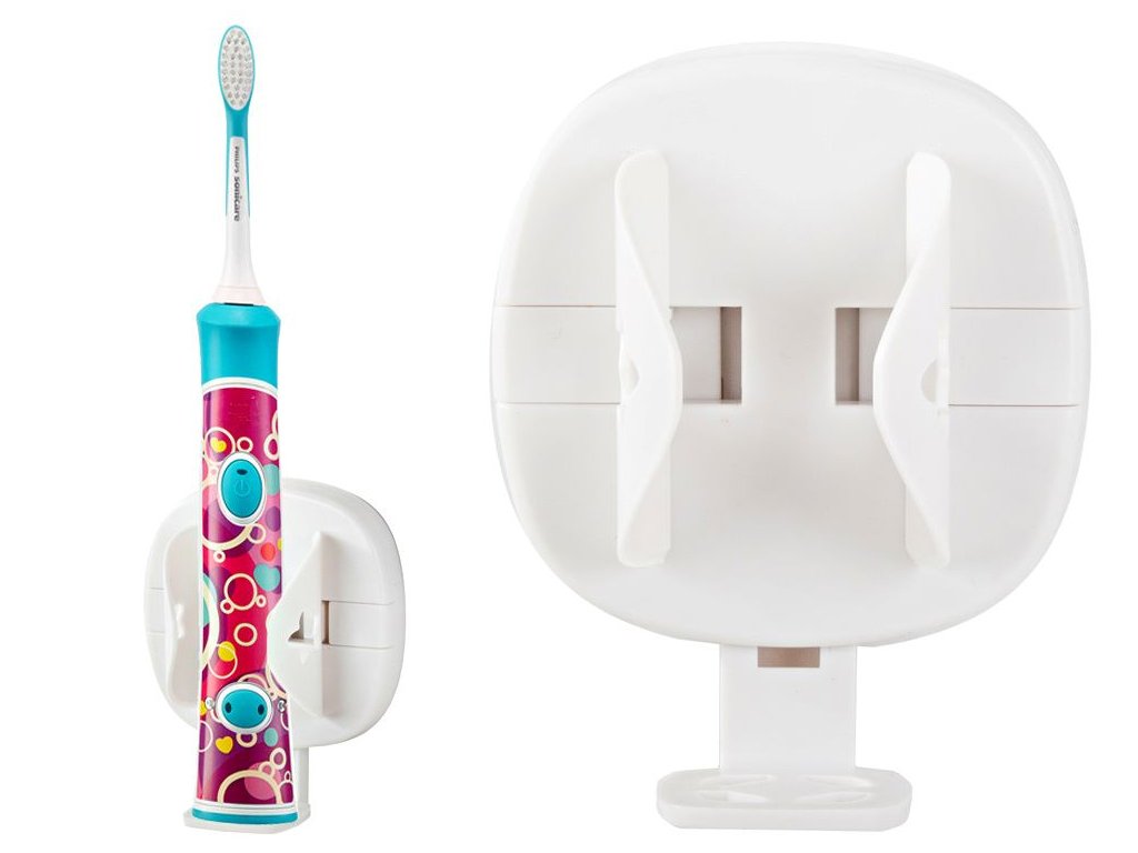 Nástěnný držák pro montáž elektrického zubního kartáčku ušetří místo v koupelně.