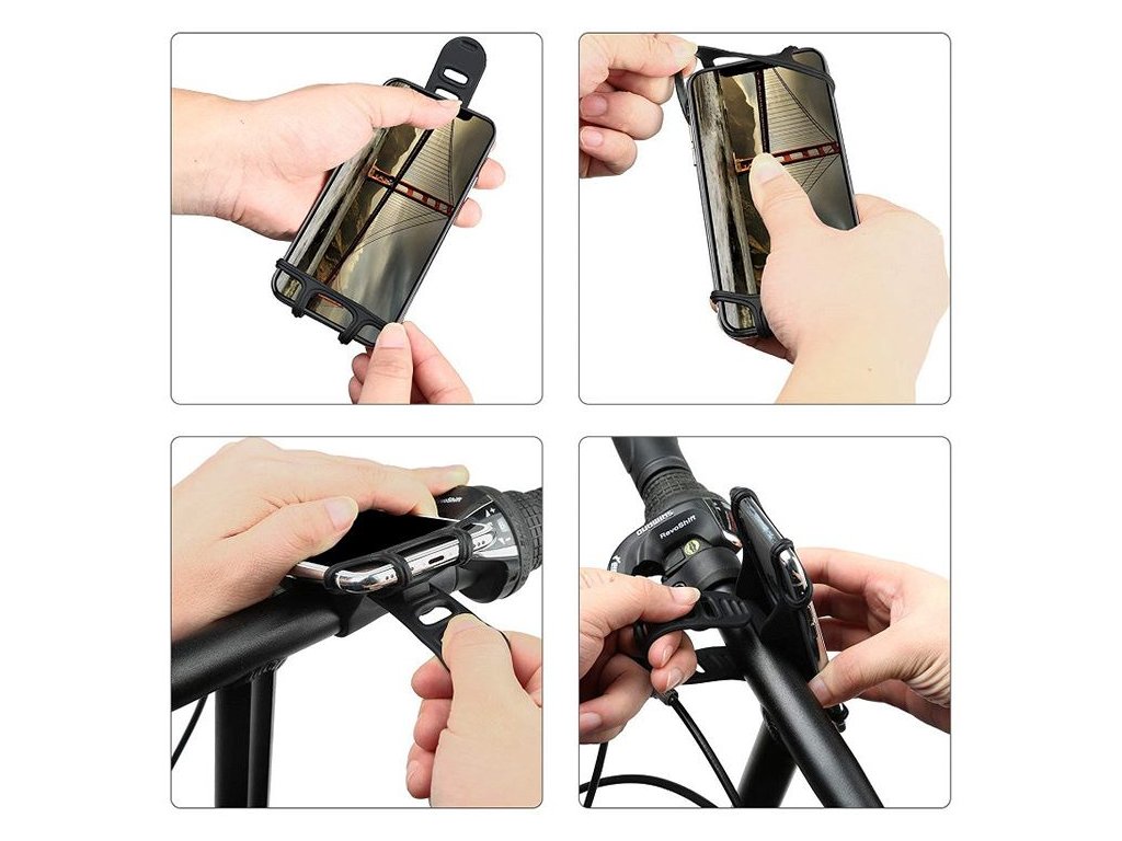 Univerzální silikonový držák na kolo - tento praktický a funkční držák je perfektním řešením pro každého cyklistu , který chce mít svůj telefon při jízdě vždy po ruce.