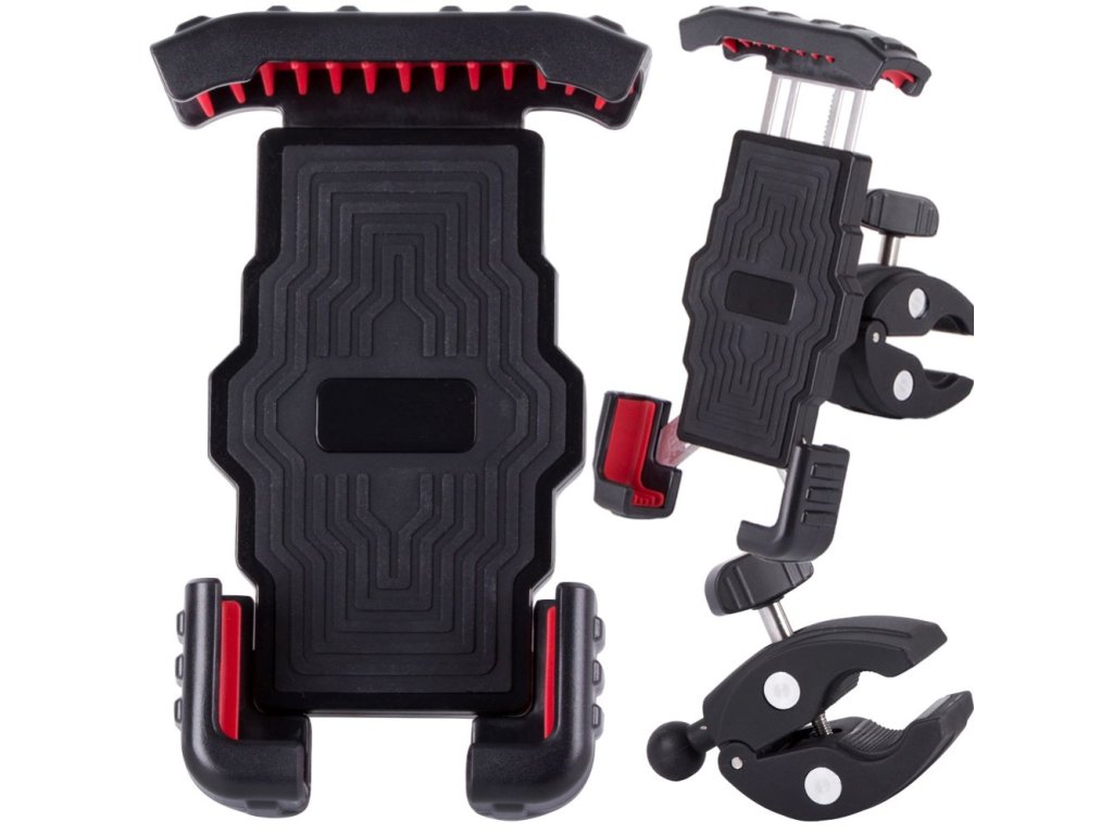 Držák je kompatibilní s většinou modelů smartphonů díky nastavitelné konstrukci, která umožňuje přizpůsobit šířku velikosti vašeho zařízení. Možnost otáčení o 360 stupňů navíc umožňuje snadné nastavení úhlu pohledu, což zajišťuje pohodlí při používání navigace nebo přehrávání hudby během jízdy.