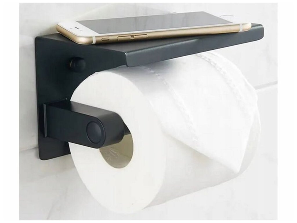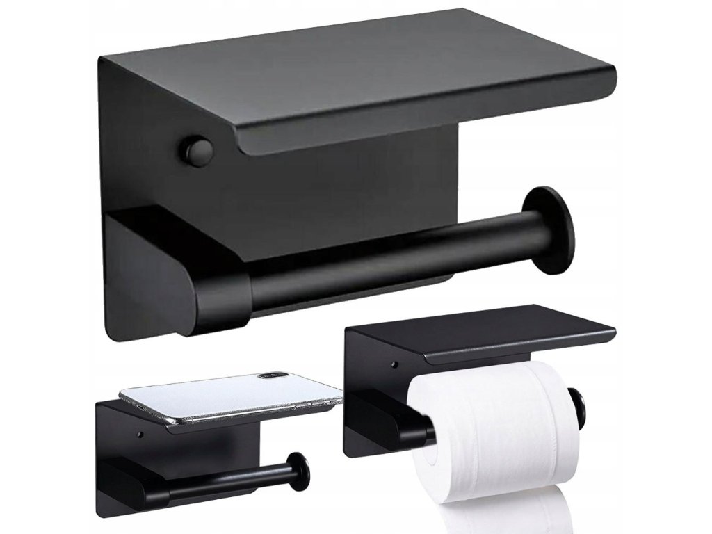 Držák toaletního papíru s poličkou na telefon, ocelový