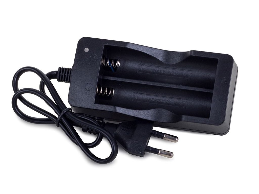Duální nabíječka nabízí možnost nabíjet 1 nebo 2 články současně. Po nabití článků se nabíječka automaticky vypne. Je vybavena LED diodou, která indikuje stav nabíjení článku.