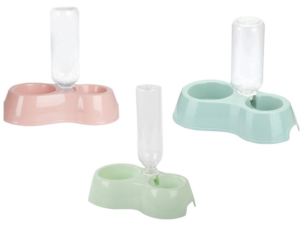 Dvojitá plastová miska s praktickým dávkovačem vody zajistí, že náš domácí mazlíček bude mít vždy k dispozici čerstvou vodu, když bude v domácnosti delší dobu mimo domov.