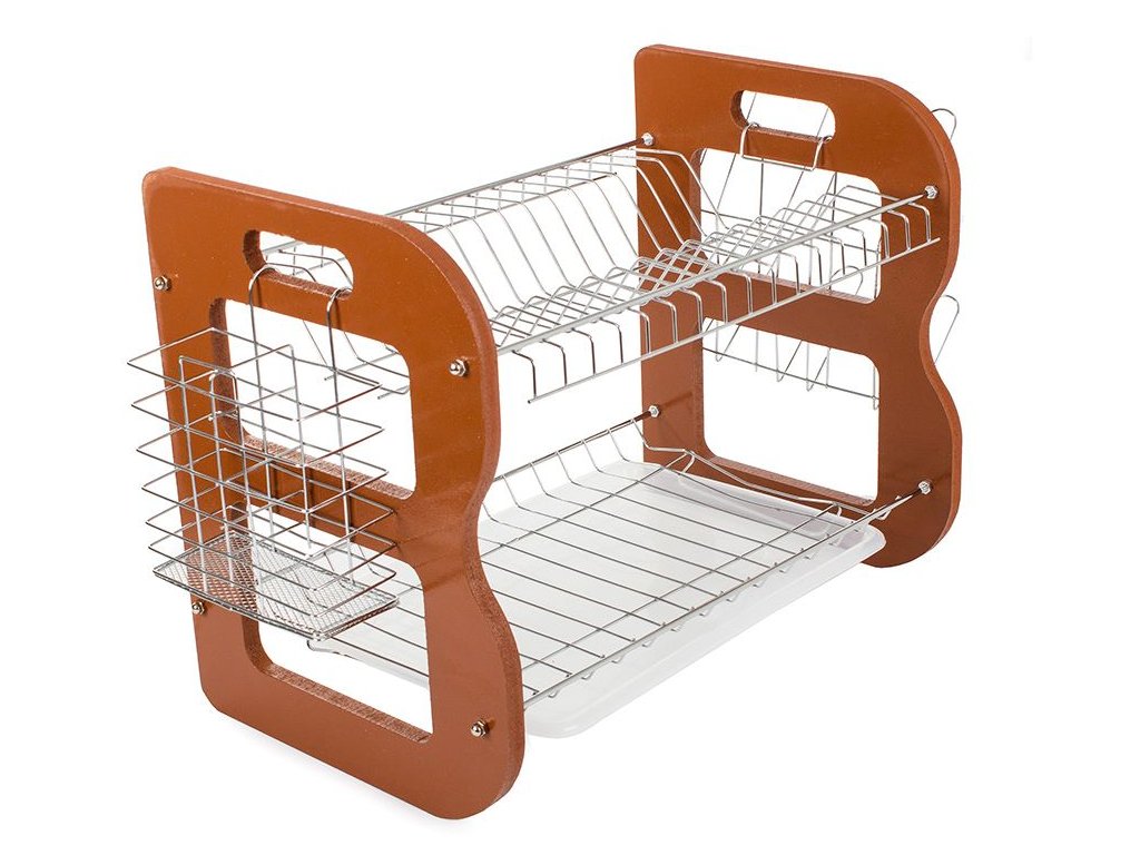 Dvoupatrový dřevěný odkapávač na nádobí