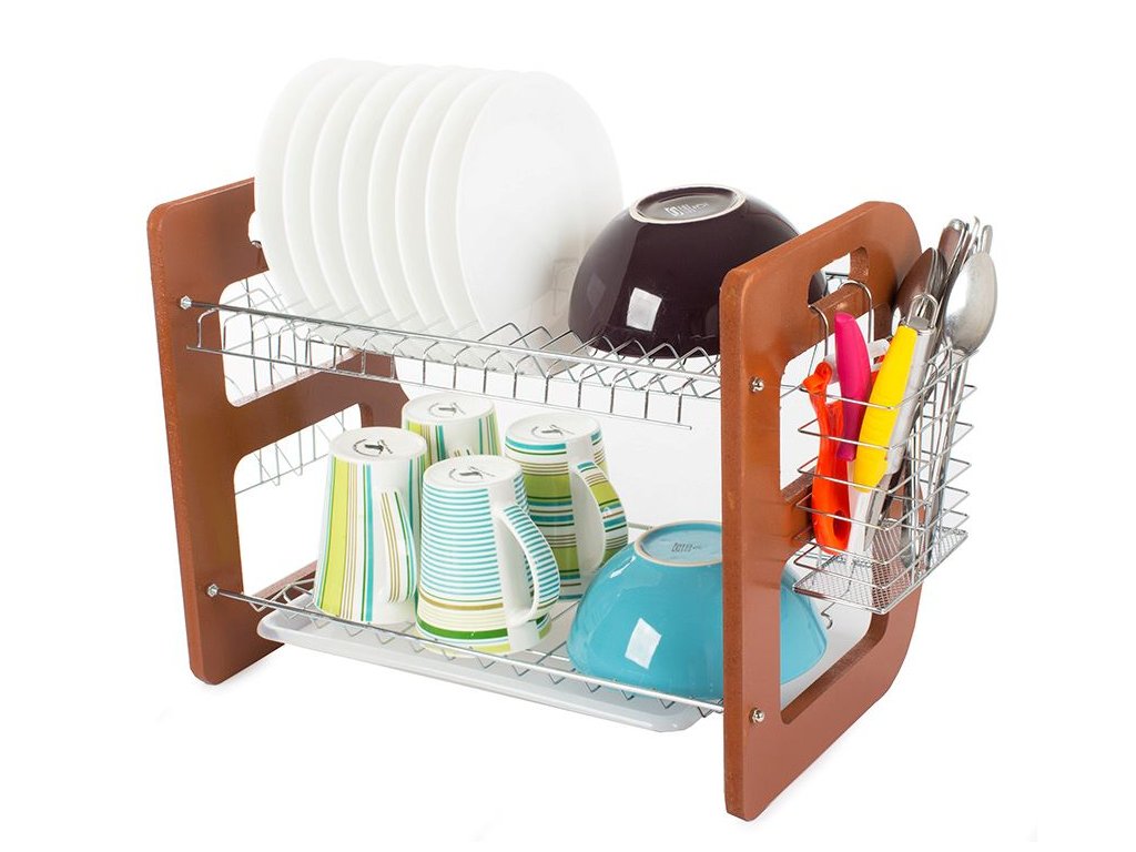 Odkapávač nádobí je nezbytným vybavením každé kuchyně. Je velmi praktický, s úspěchem pojme velké množství talířů, misek nebo sklenic a má 2 úrovně sušení.