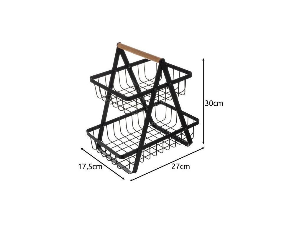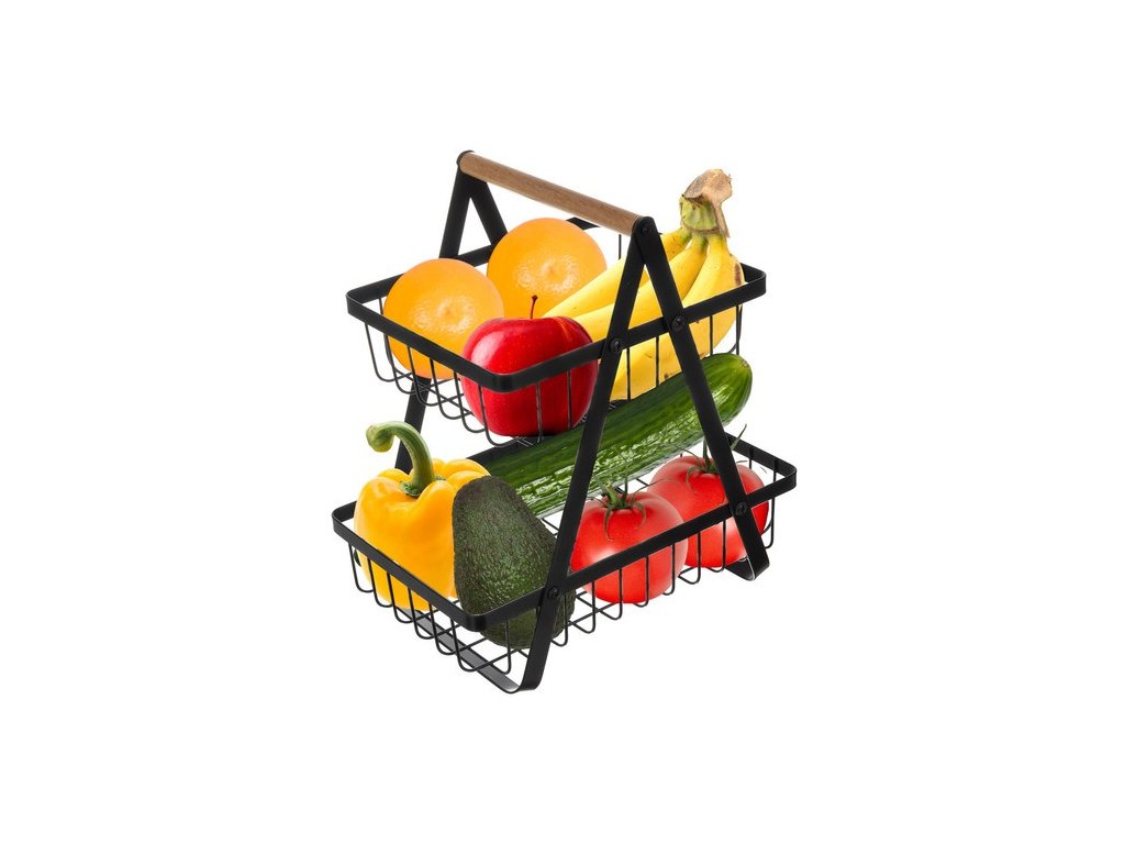 Koš na ovoce, 2patrový, černý kovový koš na zeleninu do kuchyně, půdní styl!