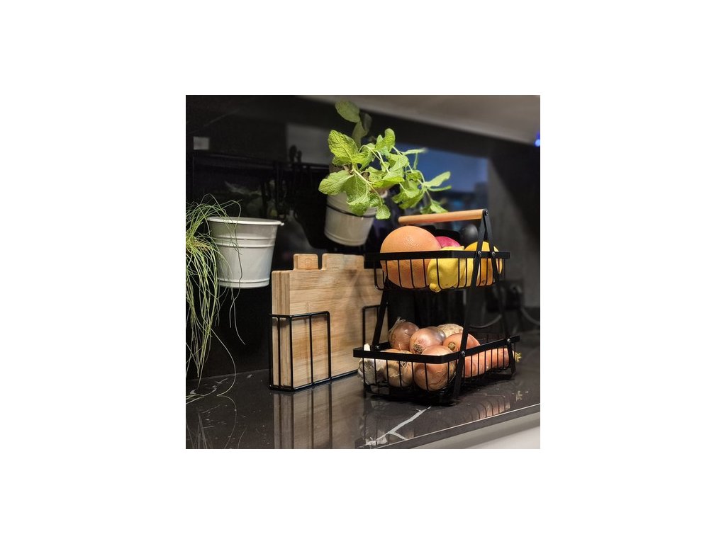 Dvouúrovňové uspořádání umožňuje uskladnit více ovoce a zeleniny na menším prostoru. Nahoru košík (24x18x6 cm) je ideální pro menší produkty, jako jsou citrusové plody nebo jablka , a spodní (30x18x32 cm) u větších, jako jsou melouny nebo skleníkové okurky. Vysoké okraje navíc zvyšují kapacitu košů, takže si můžete uspořádat prostor podle svých potřeb!