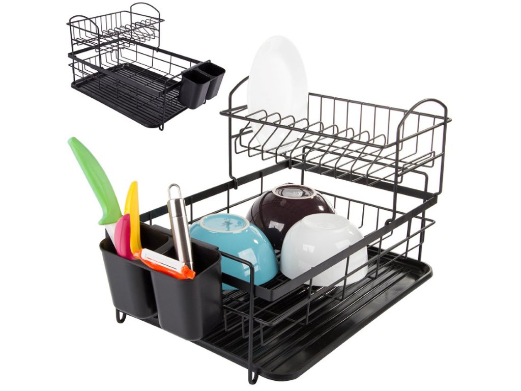 Dvoupatrový odkapávač na nádobí s tácem