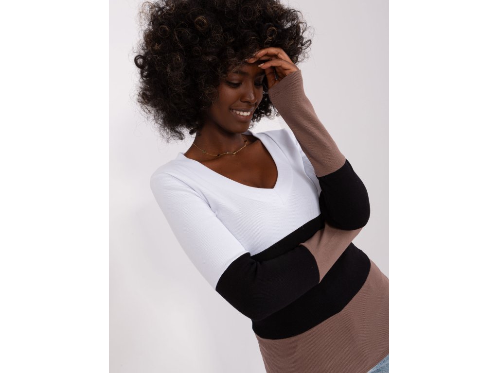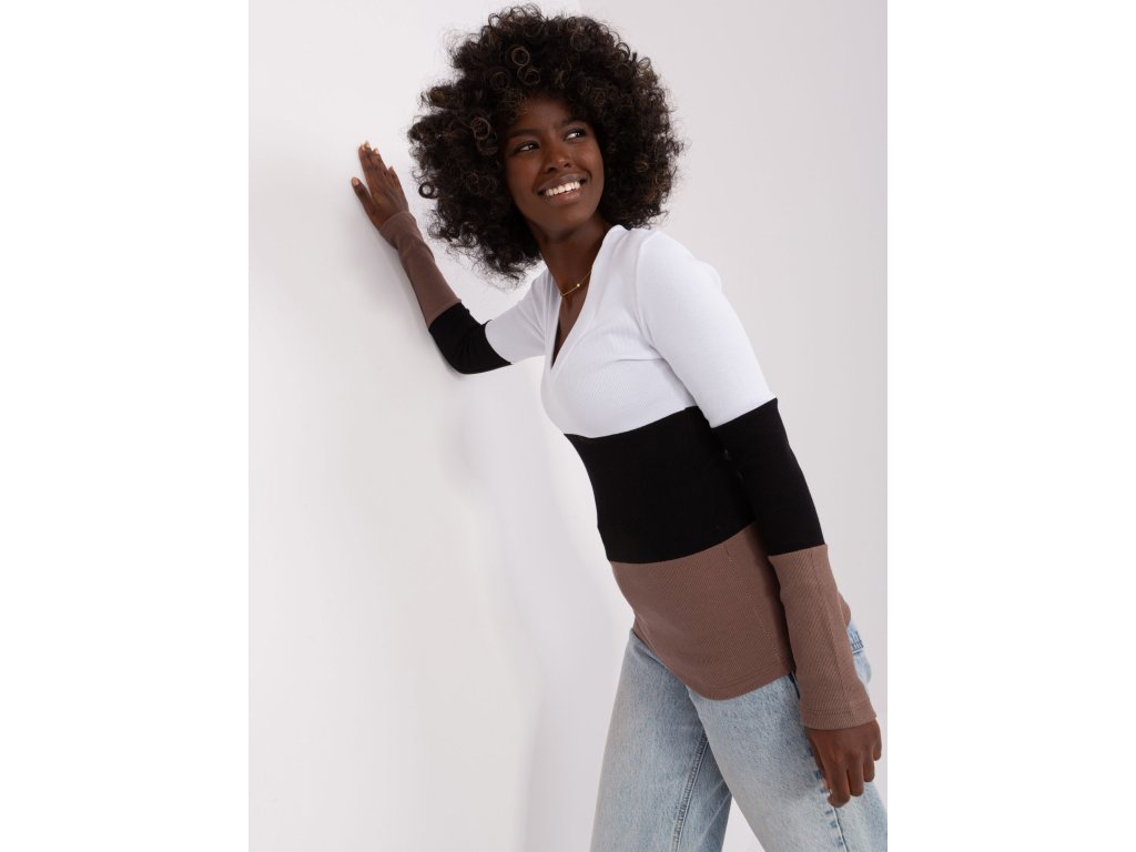 Ecru-hnědá dámská základní halenka s výstřihem do V