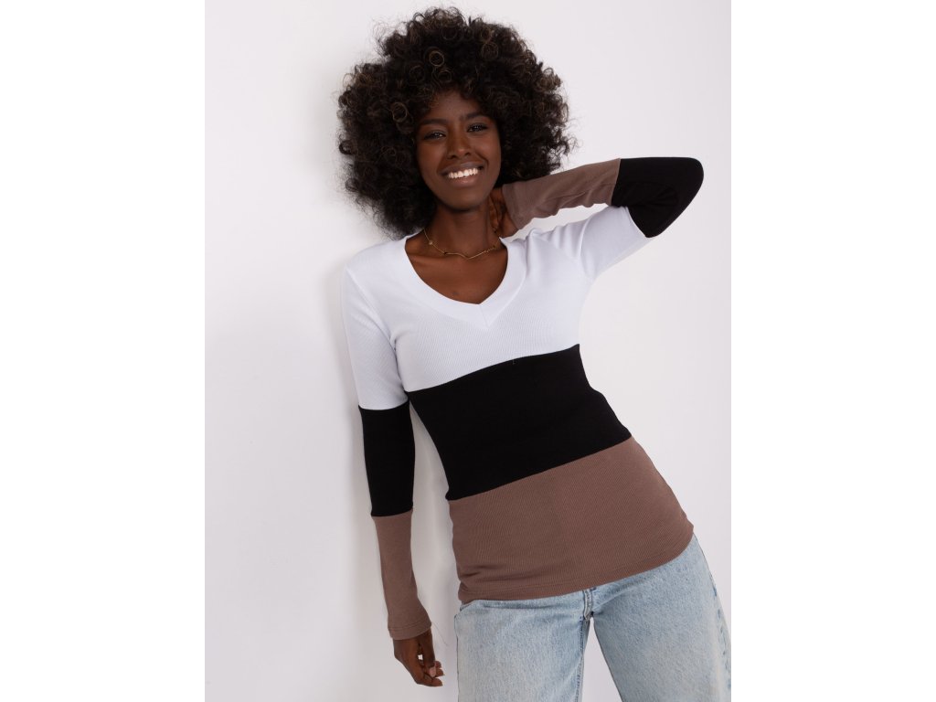 Ecru-hnědá dámská základní halenka s výstřihem do V.