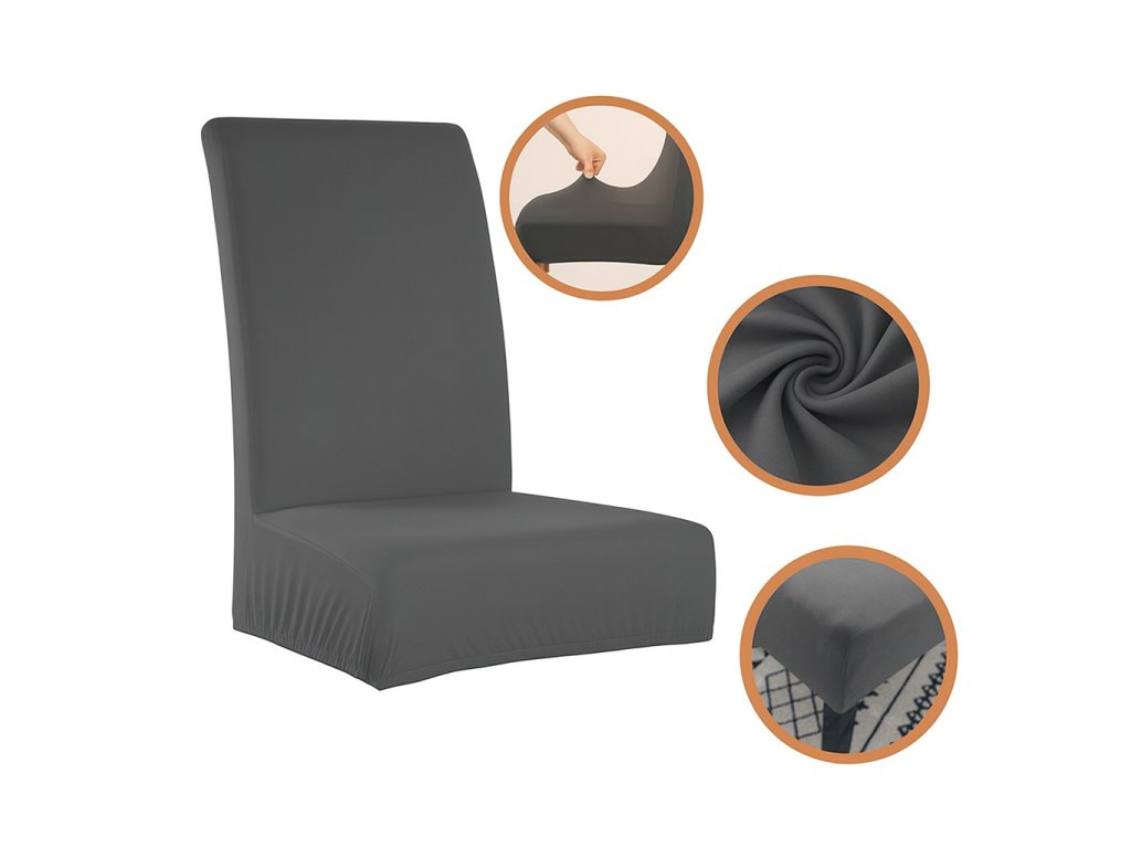 Vysoce elastický materiál (polyester + spandex) – dokonale se přizpůsobí tvaru židle.