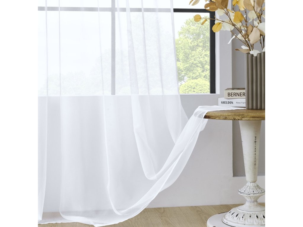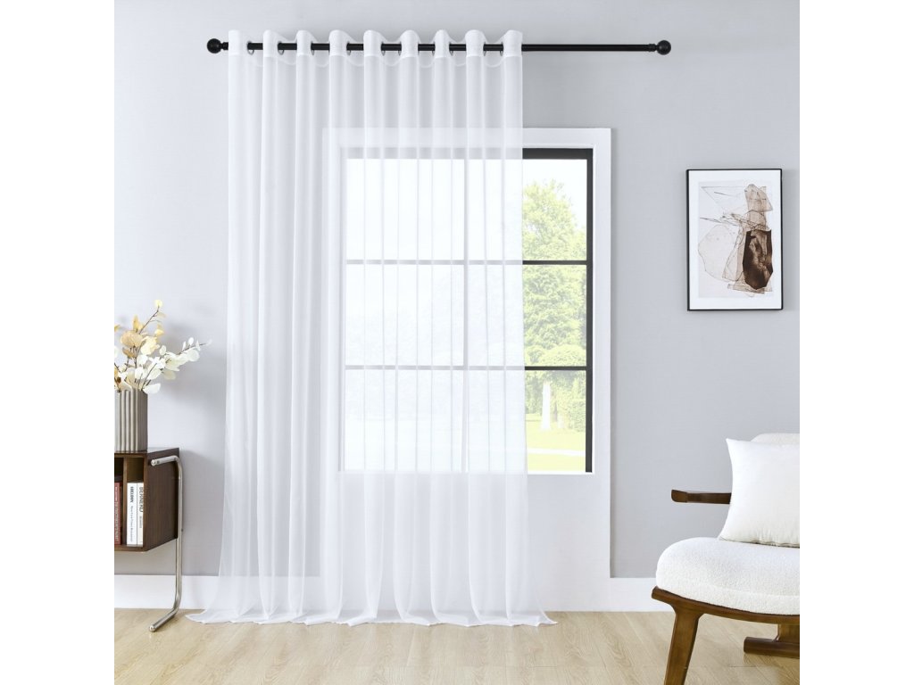 Elegantní voálová záclona s kovovými průchodkami 300×270 cm