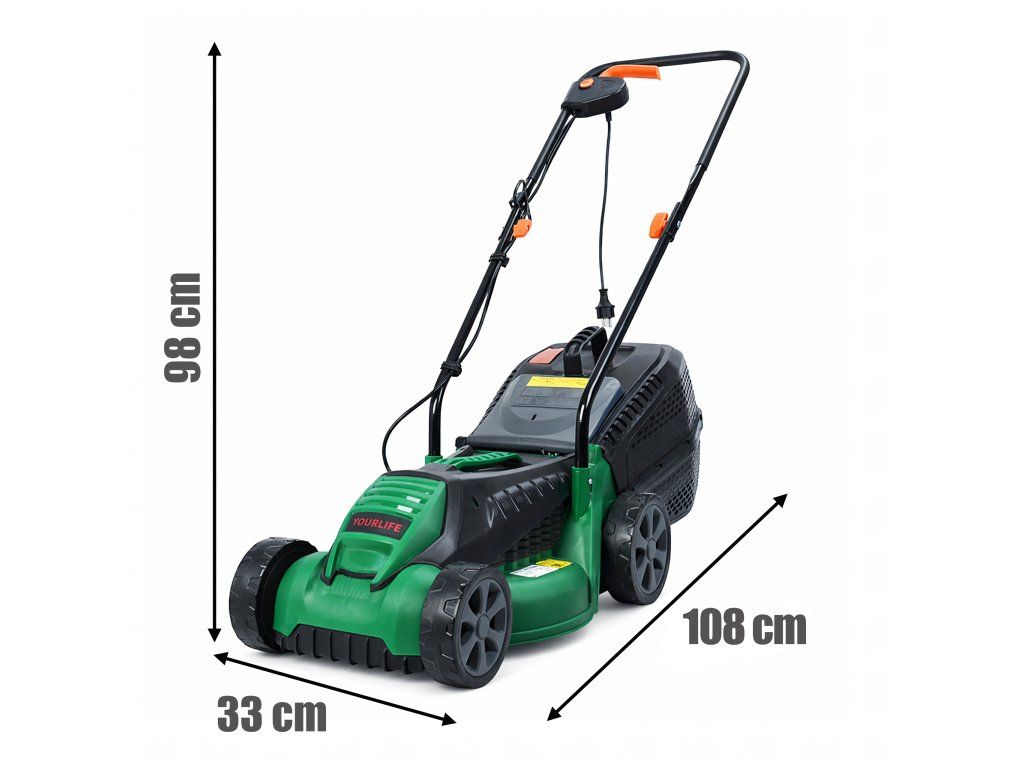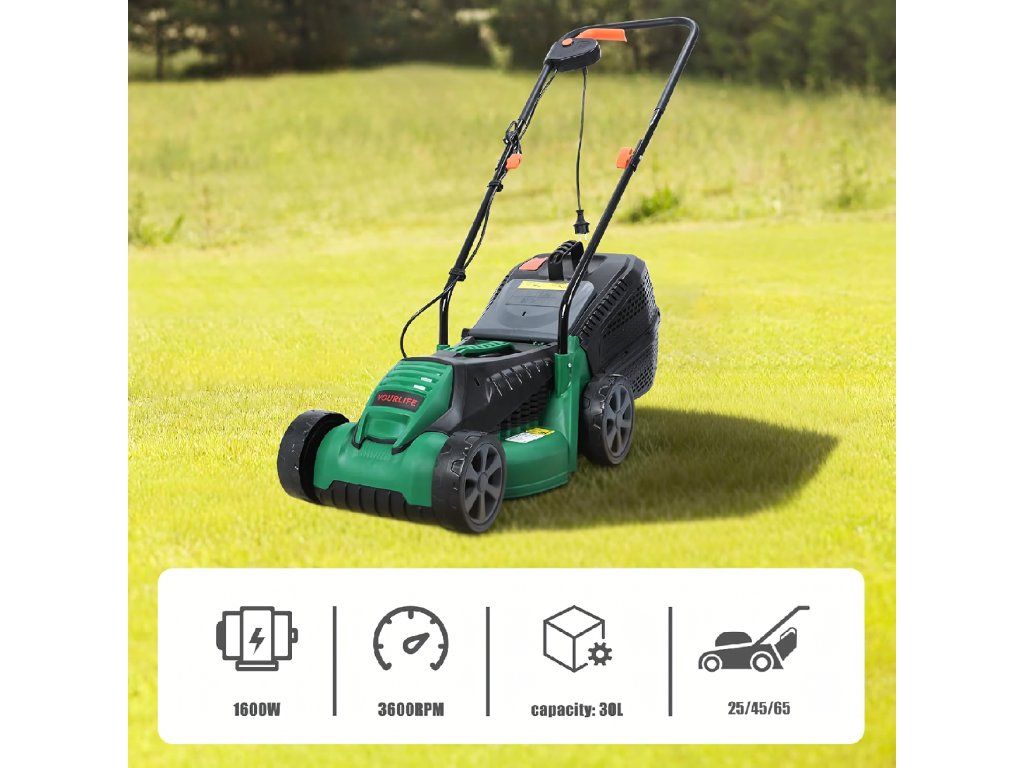 Elektrická sekačka Lehká Výkonná na sekání trávy Velký koš 30 l 1600 W 32 cm
