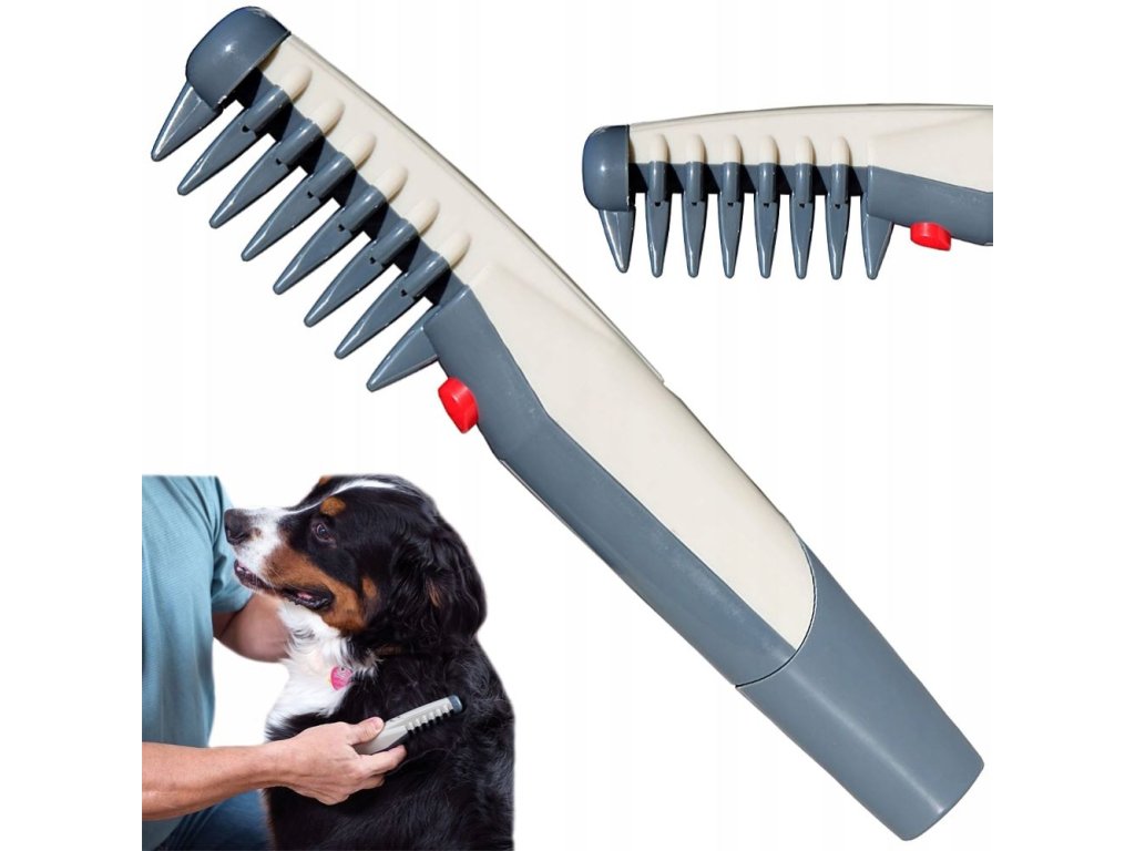 Elektrický hřeben je vhodný pro všechna plemena psů. Šetrně vyčesává srst a odstřihává zamotané chlupy v srsti. Přístroj je vybaven rotujícími čepelemi, díky kterým se snadno zbavíte zaseknuté, špinavé srsti.