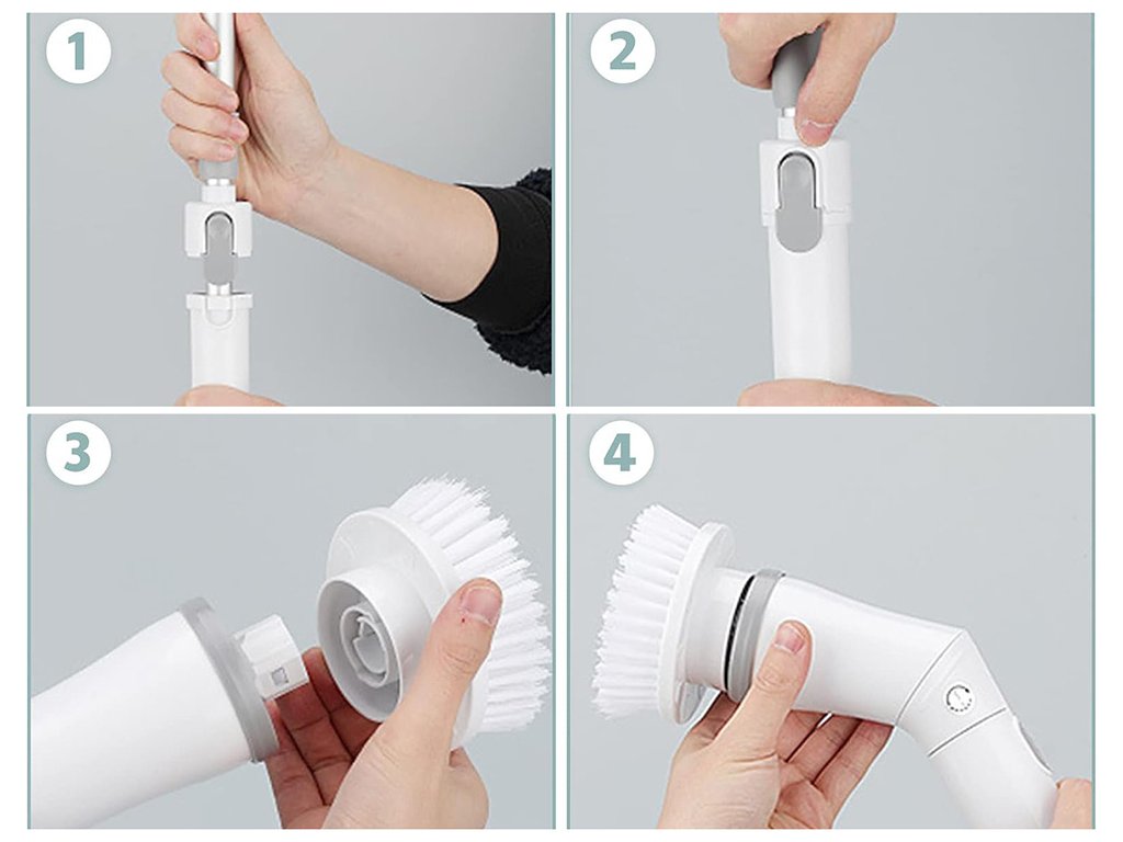 Díky šesti různým nástavcům , je kartáč ideální pro velké povrchy i úzké štěrbiny. Kónický kartáčový nástavec důkladně vyčistí těžko přístupné rohy a hrany, zatímco velký plochý kartáč se perfektně hodí na podlahy, stěny nebo sprchový kout. Sada obsahuje také půlkruhový kartáč pro všestranné použití - ideální pro čištění kohoutků nebo umyvadel. K použití kartáče nepotřebujete žádný čisticí prostředek, stačí jej namočit do vody a můžete začít čistit.