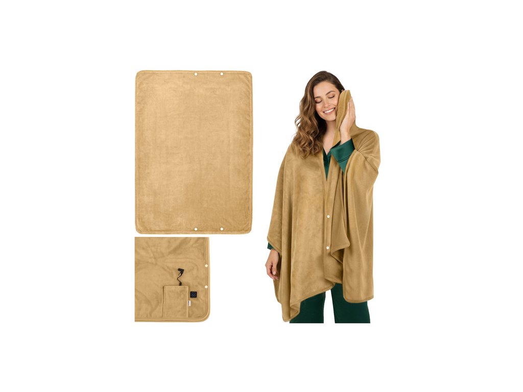 Elektrický přehoz na záda a ramena s powerbankou, deka 160x90 cm, měkká béžová - hřejivá technologie, která zahalí a uvolní