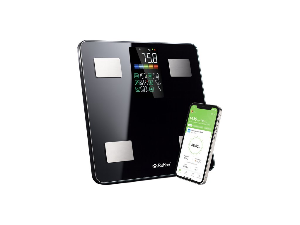 - pokročilá analýza složení těla – zařízení nejen měří tělesnou hmotnost (0,2–226 kg), ale díky technologii BIA analyzuje také BMI, procento tělesného tuku, obsah vody v těle, svalovou hmotu, kostní hmotu, viscerální tuk a další zdravotní parametry