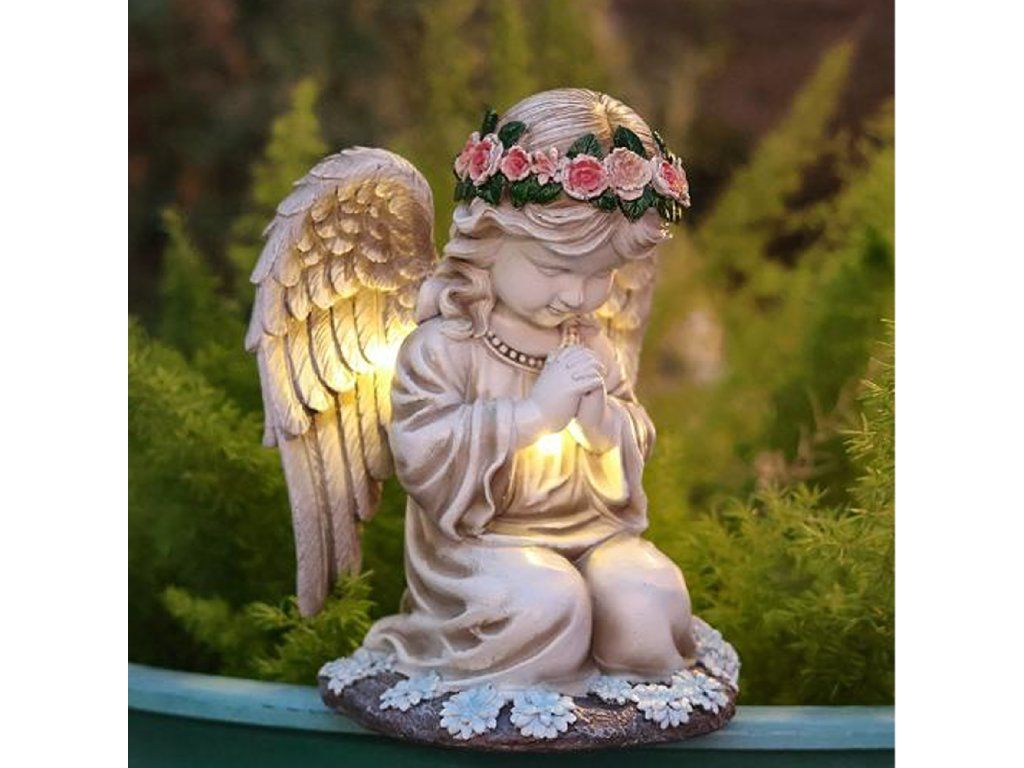 Figurka Svícen Anděl Dekorace Soška Andílek Solární LED do zahrady