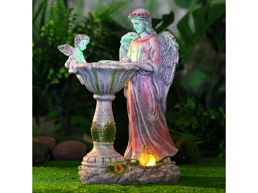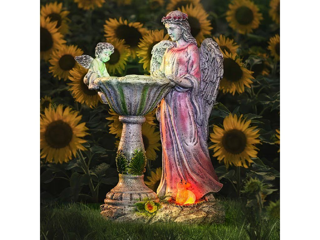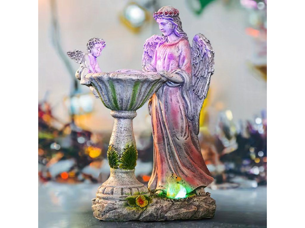 Figurka Svícen Dekorace Soška Andílek Solární LED RGB do zahrady