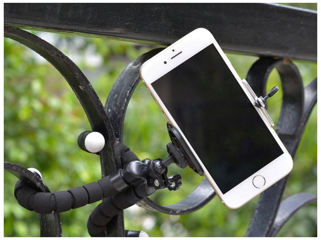 Je vyroben z pružných nohou a lze jej tedy namontovat na jakýkoli prvek. Nohy jsou navíc potaženy gumovou vrstvou, díky čemuž perfektně drží na kluzkém povrchu. Pevná konstrukce zaručuje stabilní a plynulý obraz.