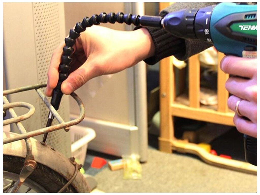 S flexibilním nástavcem bitů ušetříte čas a nervy Použití je velmi snadné. Jednoduše připojte jeden konec ohebného nástavce bitu na šroubovák a umístěte bit na druhý konec. Pružný nástavec pro vrtačku můžete ohnout v libovolném úhlu Magnetický hrot perfektně drží bit a pohyb vrtáku uvádí pružiny do pohybu tak, že snadno utáhnete jakýkoli šroub.