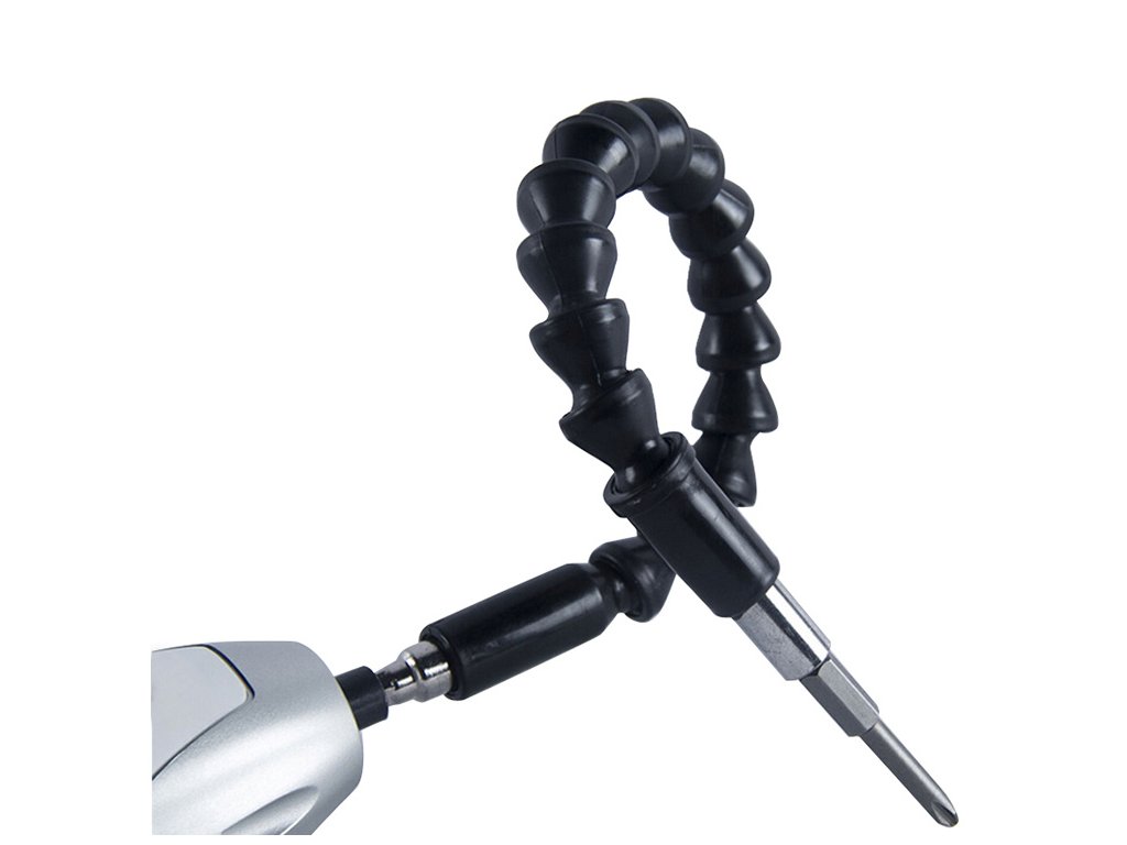 Flexibilní nástavec bitů je nepostradatelným nástrojem pro utahování šroubů a šroubů na těžko přístupných místech pro váš šroubovák nebo vrtačku. Nástavec je pružný , takže jej můžete ohýbat, jak chcete, abyste udidlo umístili na správné místo.