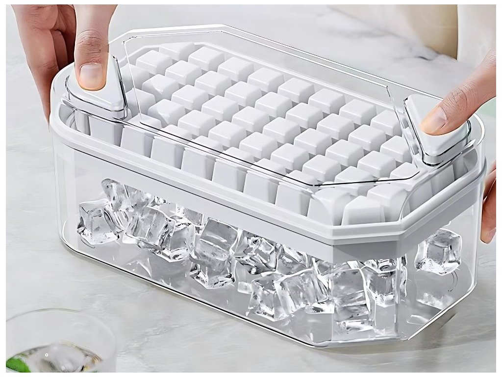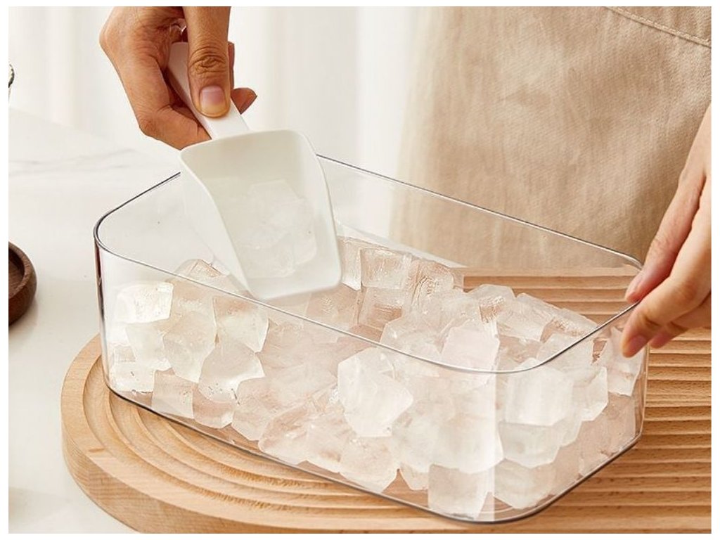 Funkční forma na led s praktickým zásobníkem a lopatkou umožňuje rychlou a hygienickou přípravu až 50 kostek najednou. Díky zásobníku lze led skladovat v mrazáku bez rizika znečištění a přiložená lopatka usnadňuje nabírání kostek do sklenic nebo šejkrů.