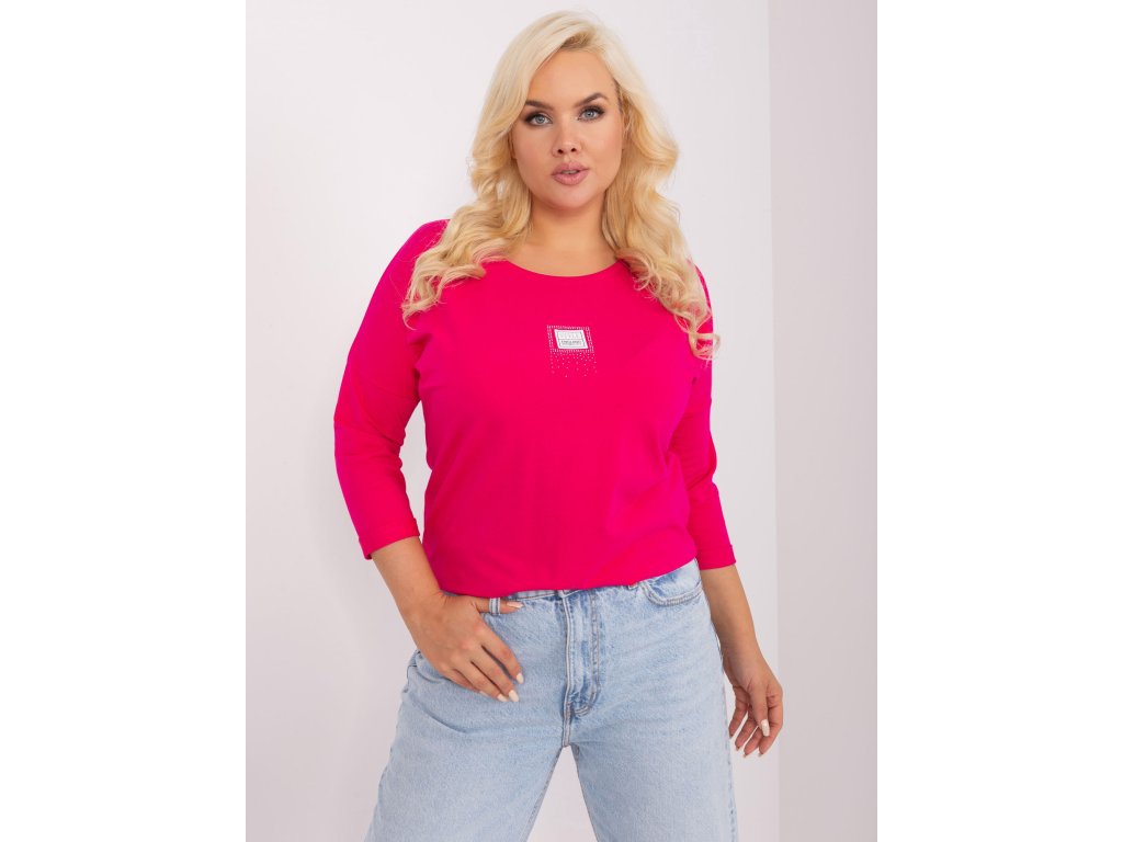 Fuchsiová dámská halenka plus size s žebrováním