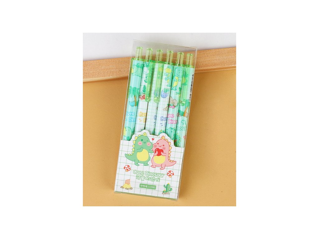 Gelové pero, tenký hrot, černá náplň DINOSAURUS 14 cm, sada 6 ksDoplňkové parametry