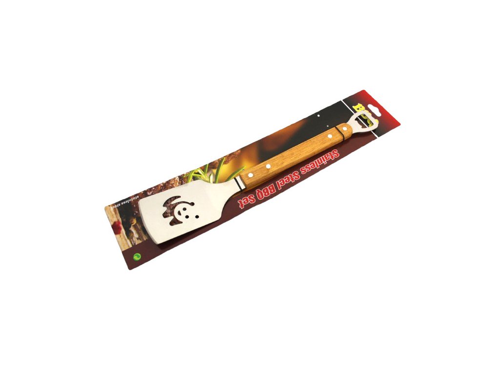 Grilovací lopatka s otvírákem, kovová, s dřevěnou rukojetí, v blistru 47,5 x 10 cmDoplňkové parametry