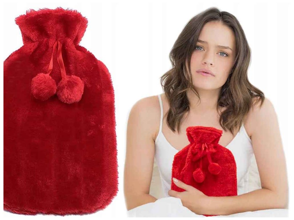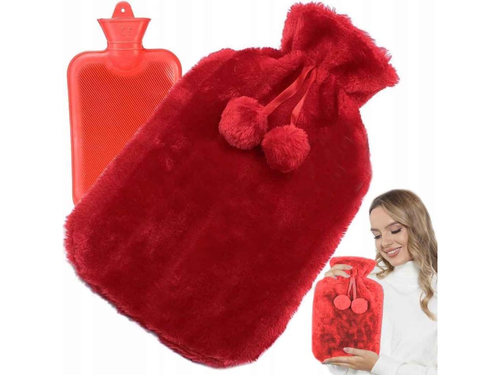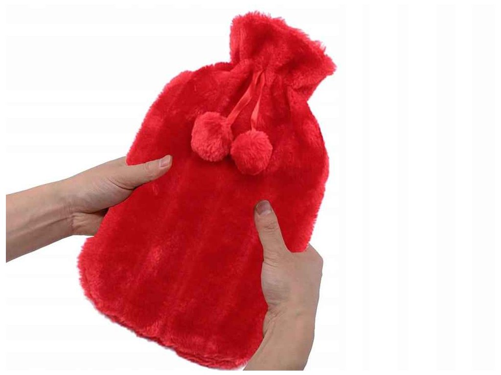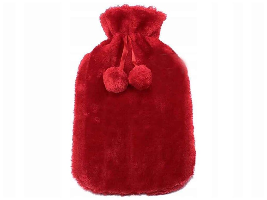 Gumový termofor s plyšovým potahem, nahřívací láhev, červená