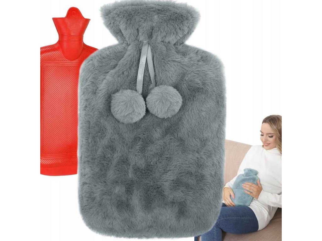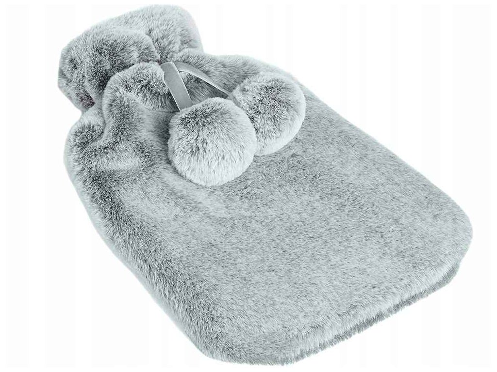 Gumový termofor s plyšovým potahem, nahřívací láhev, šedá